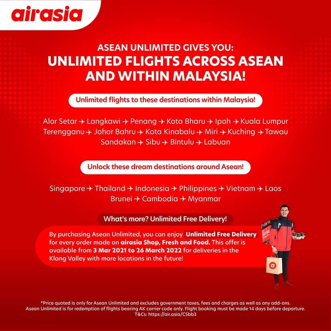 Kini, AirAsia telah pun membuat promosi hebat dengan menawarkan AirAsia Asean Unlimited dengan hanya berharga RM599. Korang boleh membuat penerbangan domestik ke seluruh negeri dan beberapa negara Asean seperti Singapura, Thailand, Vietnam, Filipina, Indonesia, Kemboja, Laos, Myanmar dan Brunei. Namun, tawaran ini tidak terbuka bagi penerbangan ke China.