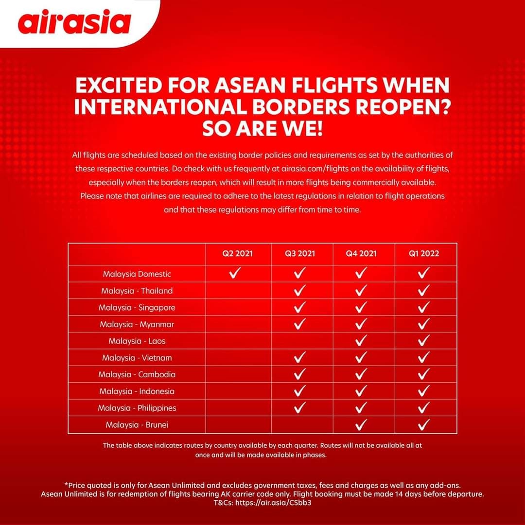 Tarikh pernerbangan adalah bermula 17 Mac 2021 hingga 26 Mac 2022 dan tarikh menebus dari 3 Mac 2021 hingga 12 Mac 2022.