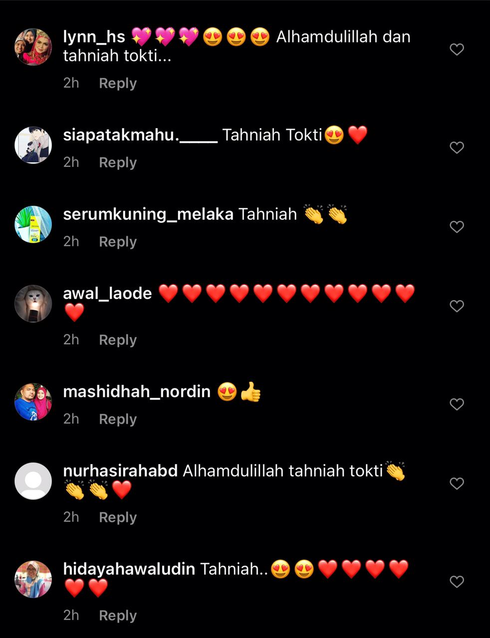 Datuk Seri Siti Nurhaliza atau lebih mesra dengan nama Tokti sempat berkongsi berita kegembiraan ini di laman Instagram miliknya, beliau memuat naik sebuah posting mengucapkan terima kasih atas sokongan peminat-peminat yang sentiasa ada ketika waktu susah dan senang.
