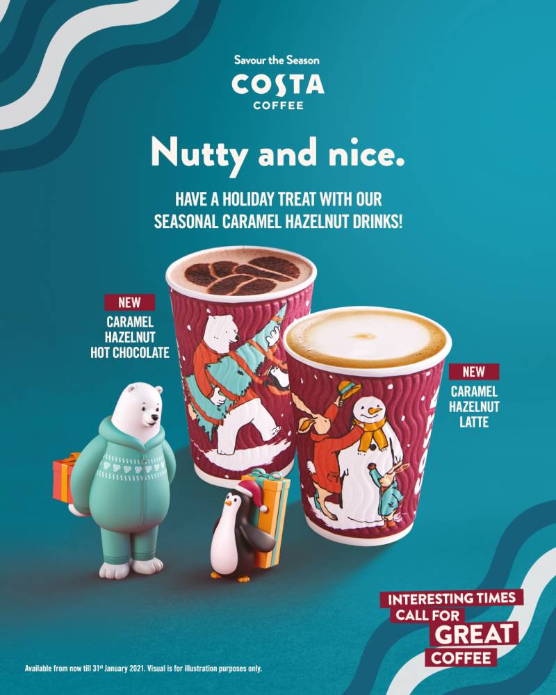 Terbaru, mereka memperkenalkan minuman Caramel Hazelnut Hot Chocolate dan Caramel Hazelnut Latte bagi korang yang menggemari perisa kekacang dalam minuman.