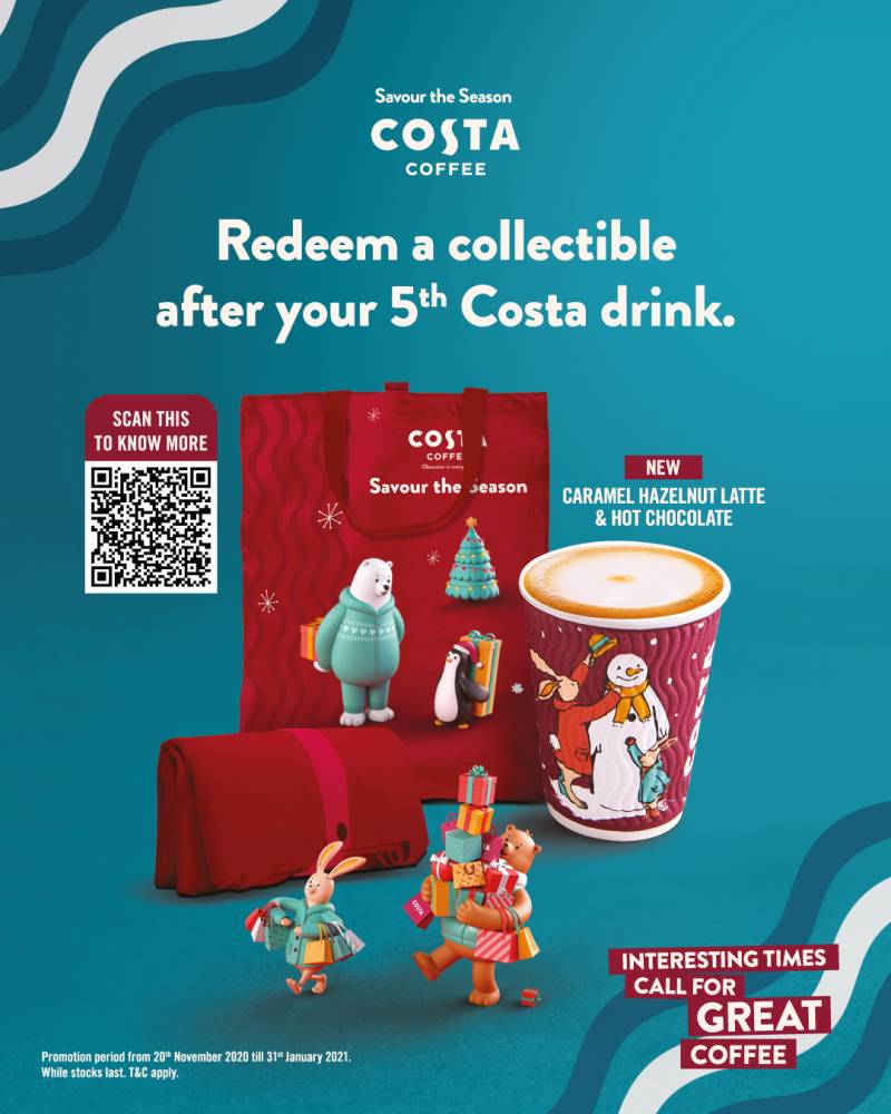 Tambah menarik apabila semua minuman yang disediakan di mesin Costa Express pada bulan ini disediakan dalam cawan hiasan Krismas untuk menceriakan mood pembeli.