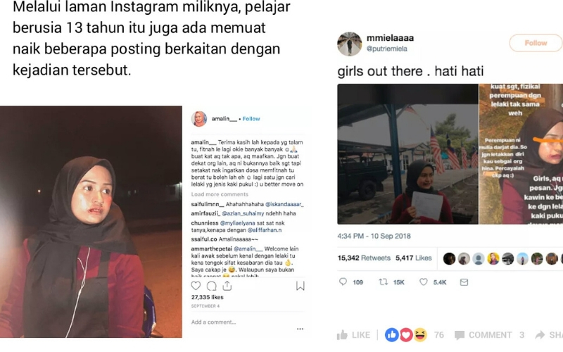 Hari ini kecoh di media sosial kisah seorang instafamous remaja, Amalin yang mendakwa telah dibelasah oleh teman lelakinya sehingga tubuhnya lebam-lebam.
