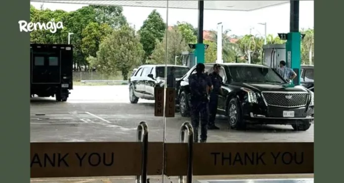 The Beast, kenderaan rasmi Presiden Amerika Syarikat yang digelar ‘kereta paling selamat di dunia’, mencuri perhatian rakyat Malaysia apabila ia dilihat mengisi minyak di stesen minyak Petronas baru-baru ini.
