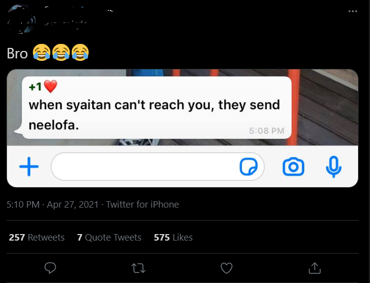 Gara-gara rasa marah warga netizen dengan tindakan Neelofa kerana memuatnaik gambar tersebut, lalu mereka menyindir dan troll Neelofa di akaun Twitter milik mereka. Sindiran demi sindiran, ada diantaranya mencuit hati ramai warga netizen lain.