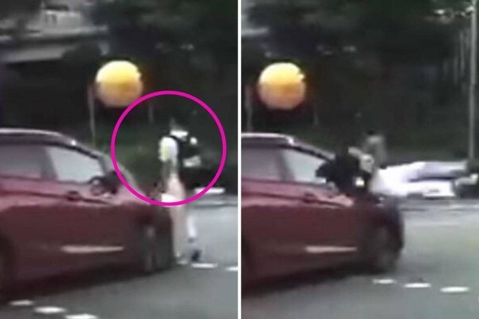 Sebuah video yang dimuat naik oleh Roads.sg ini menunjukkan seorang remaja lelaki Singapura dilanggar oleh sebuah kereta yang sedang bergerak sehingga terpelanting.