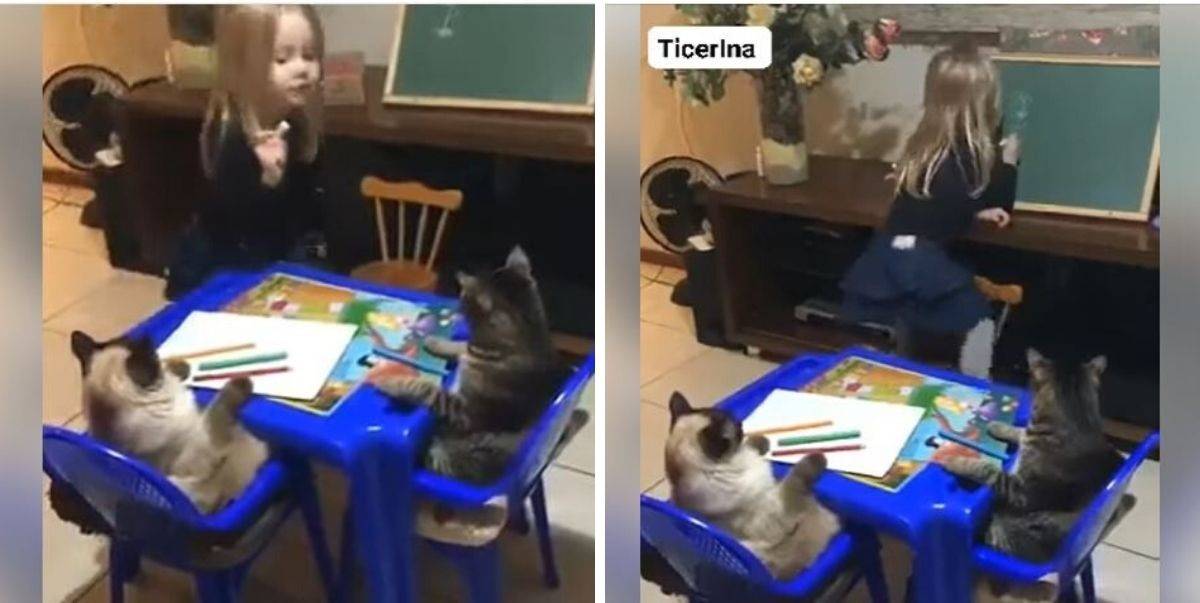 Perkongsian video seorang kanak-kanak perempuan yang mungkin bercita-cita nak jadi cikgu bila besar nanti, hikz memang boleh buat hati terihibur pagi-pagi ini. Lebih best, anak muridnya terdiri dari kucing-kucing comel. Dari gayanya mengajar, cerah masa depannya nak jadi cikgu, siap ada gaya lagi. Apa pun moga cita-cita kanak-kanak comel ini berjaya pada masa depan ya.