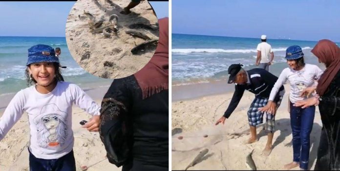 Seronoknya keluarga Palestin ini apabila Allah menghadiahkan kepada mereka hasil tangkapan yang baik di pantai utara Gaza.