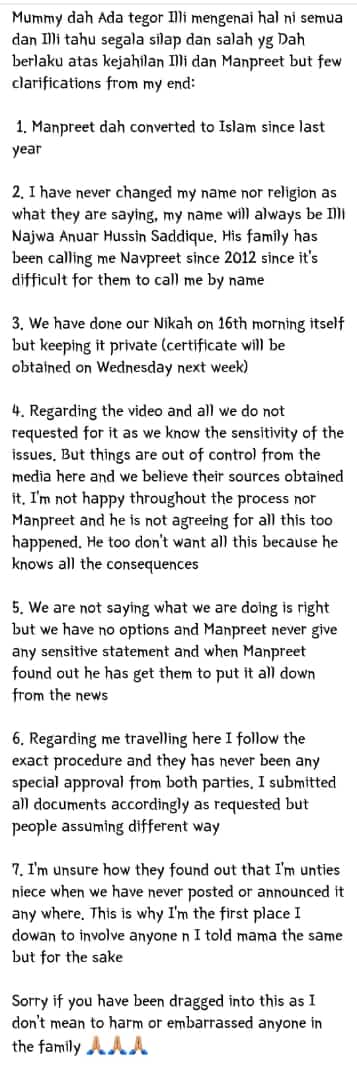 Namun sebelum ini, tular juga penjelasan dari Illi Najwa di laman sosial;