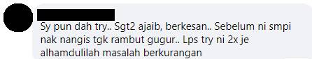 Mudah sahaja kan? Bagi individu yang mempunyai masalah rambut gugur bolehlah cuba petua ini kerana ramai juga yang meninggalkan komen mengatakan bahawa petua ini serasi dan menjadi.
