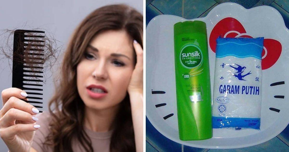 Letakkan satu sudu besar garam pada tapak tangan dan picitkan syampu yang korang nak gunakan atas garam tadi. Gaulkan sebati, kemudian ramas di kepala biar sampai ke kulit kepala. Bilas dengan air dan selepas bilas boleh pakai conditioner seperti biasa.